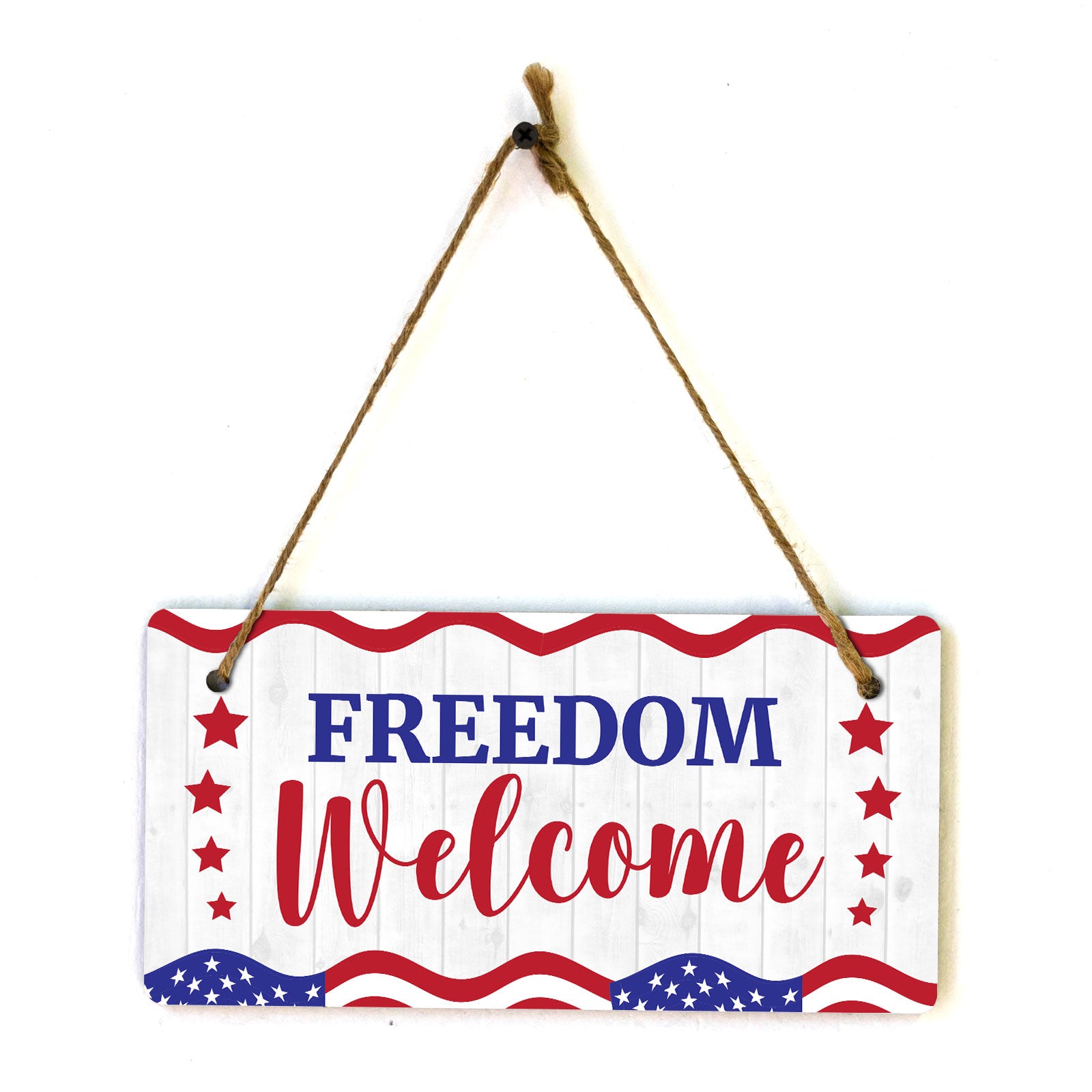 Freedom Welcome 5x10 Hanging Plus Wall or Door Sign | American Pride