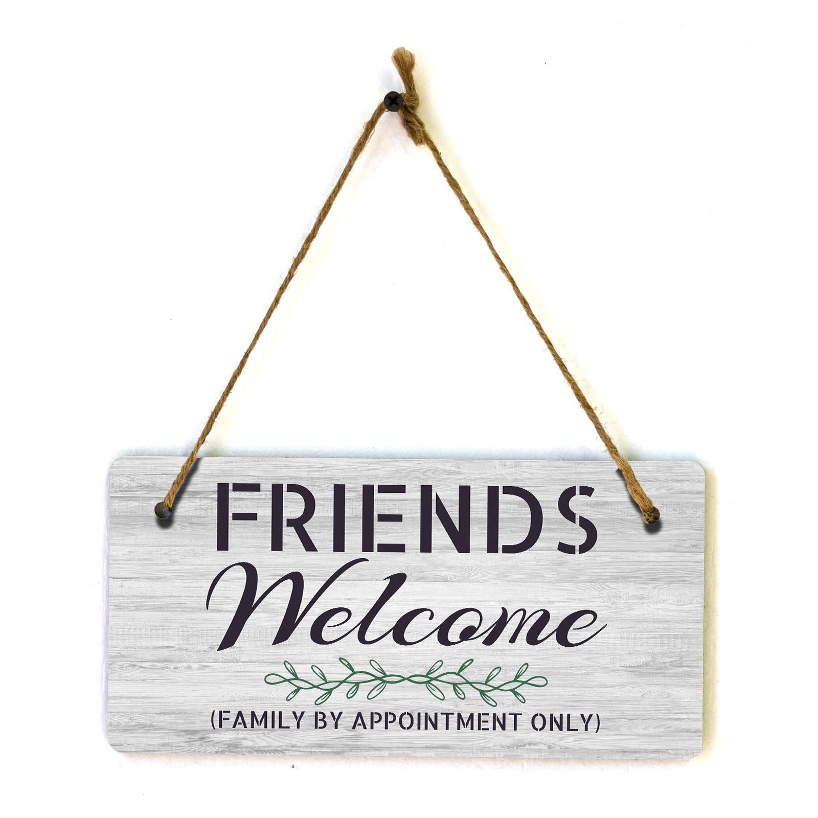 Friends Welcome Family By Appointment Only 5" x 10" Hanging Wall or Door Sign | Funny Home Décor