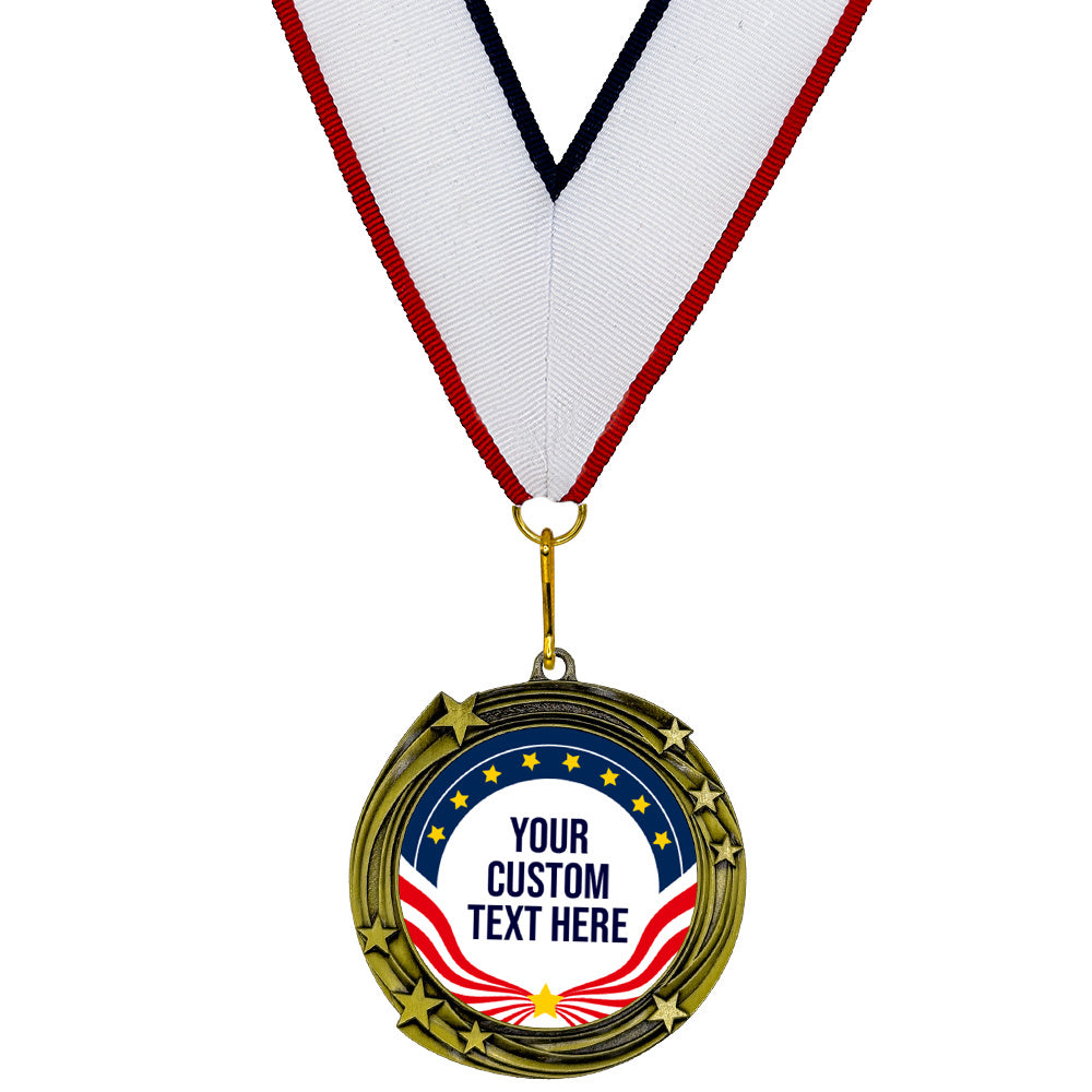 Gold Star Custom Personalized Stars Design Medal | Choice of Ribbon | USA Flag Personalized Award