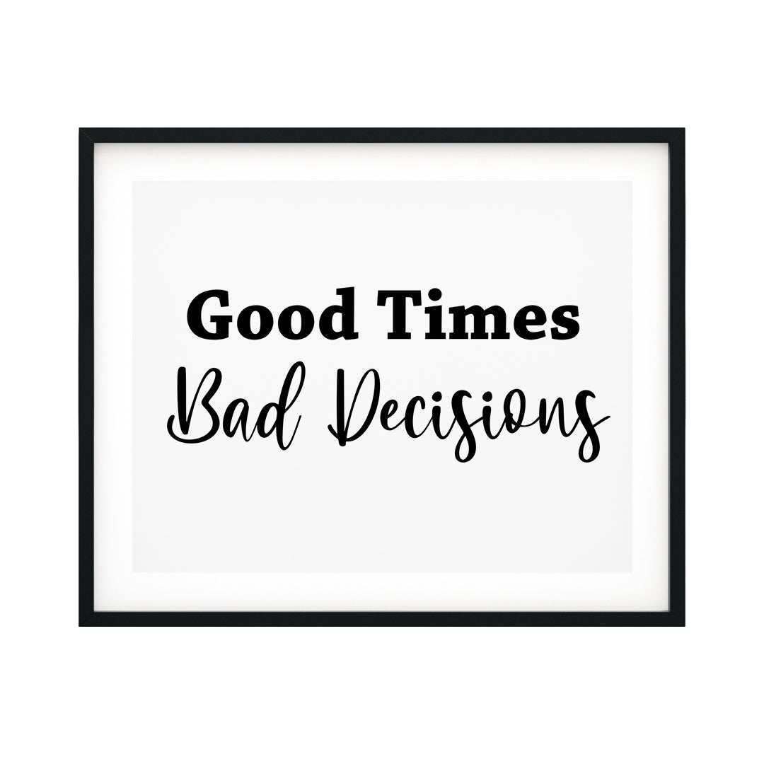 Good Times Bad Decisions UNFRAMED Print Motivational Fun Wall Art
