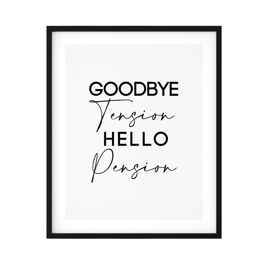 Goodbye Tension Hello Pension UNFRAMED Print Novelty D?cor Wall Art