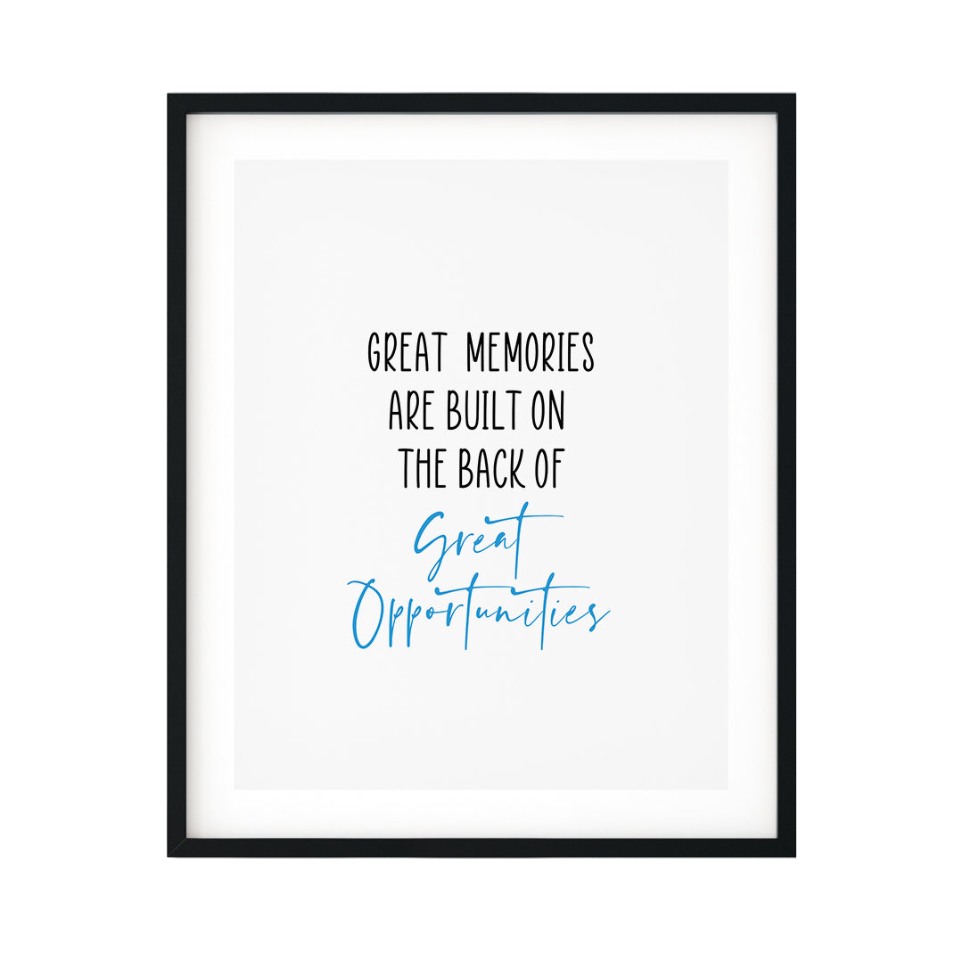 Great Memories Are Built On The Back Of Great Opportunities UNFRAMED Print Inspirational Wall Art