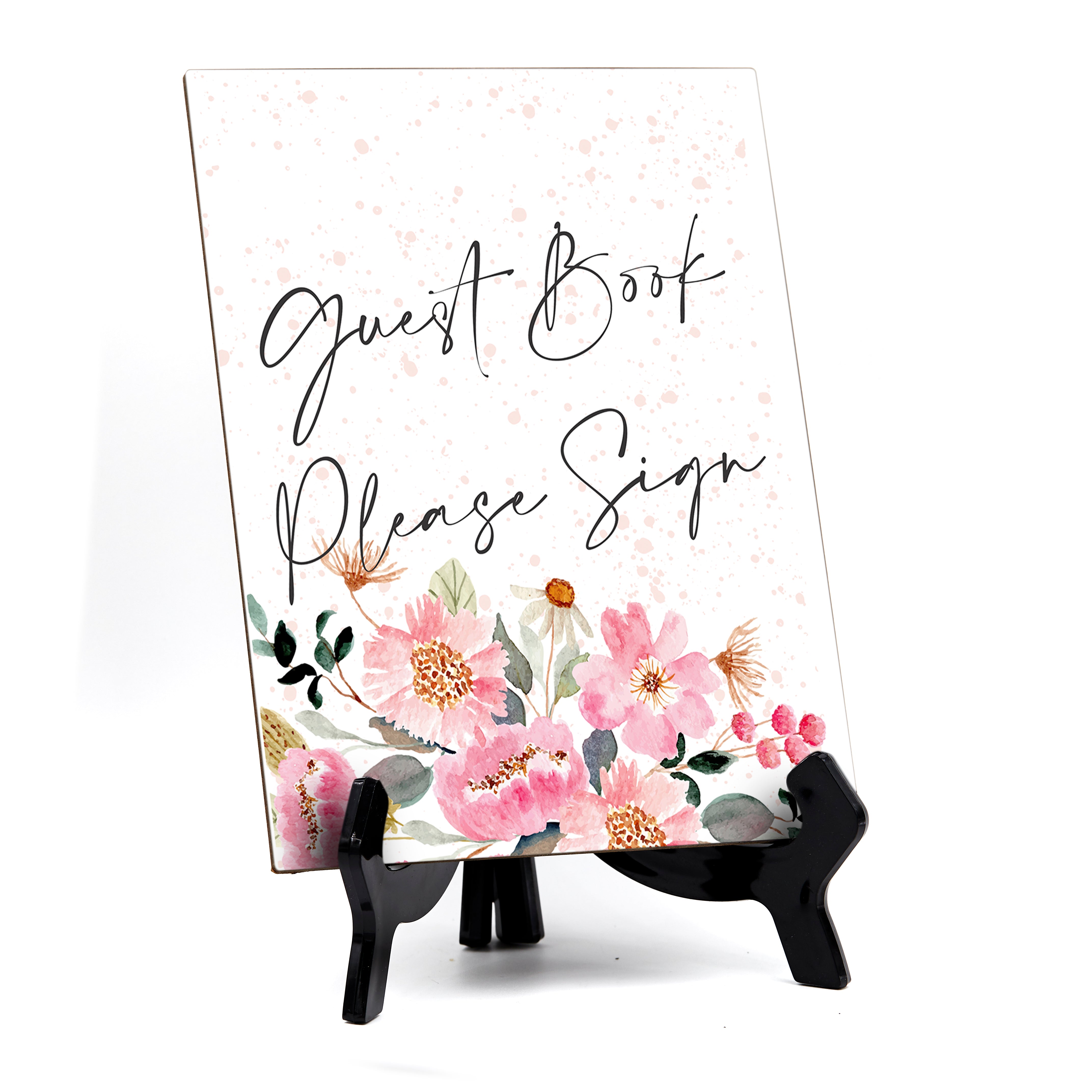 Guest Book Please Sign. Comes with Easel, Floral Watercolor Design (6" x 8") Professional Sign. Great for weddings, parties, dinner parties, general table signs.