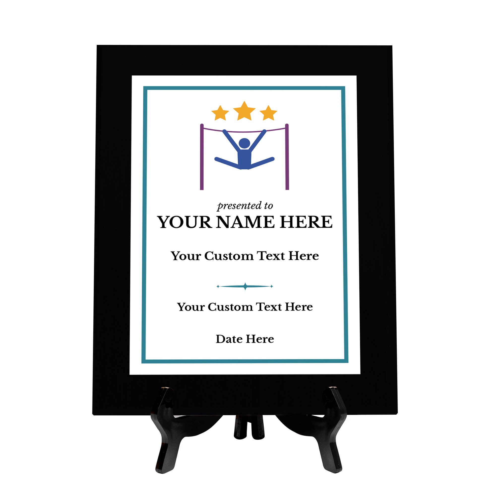 Gymnastics Customizable Black Frame Wooden Award Plaque | Easel Mount Option | Achievement and Recognition Personalizable Plaques