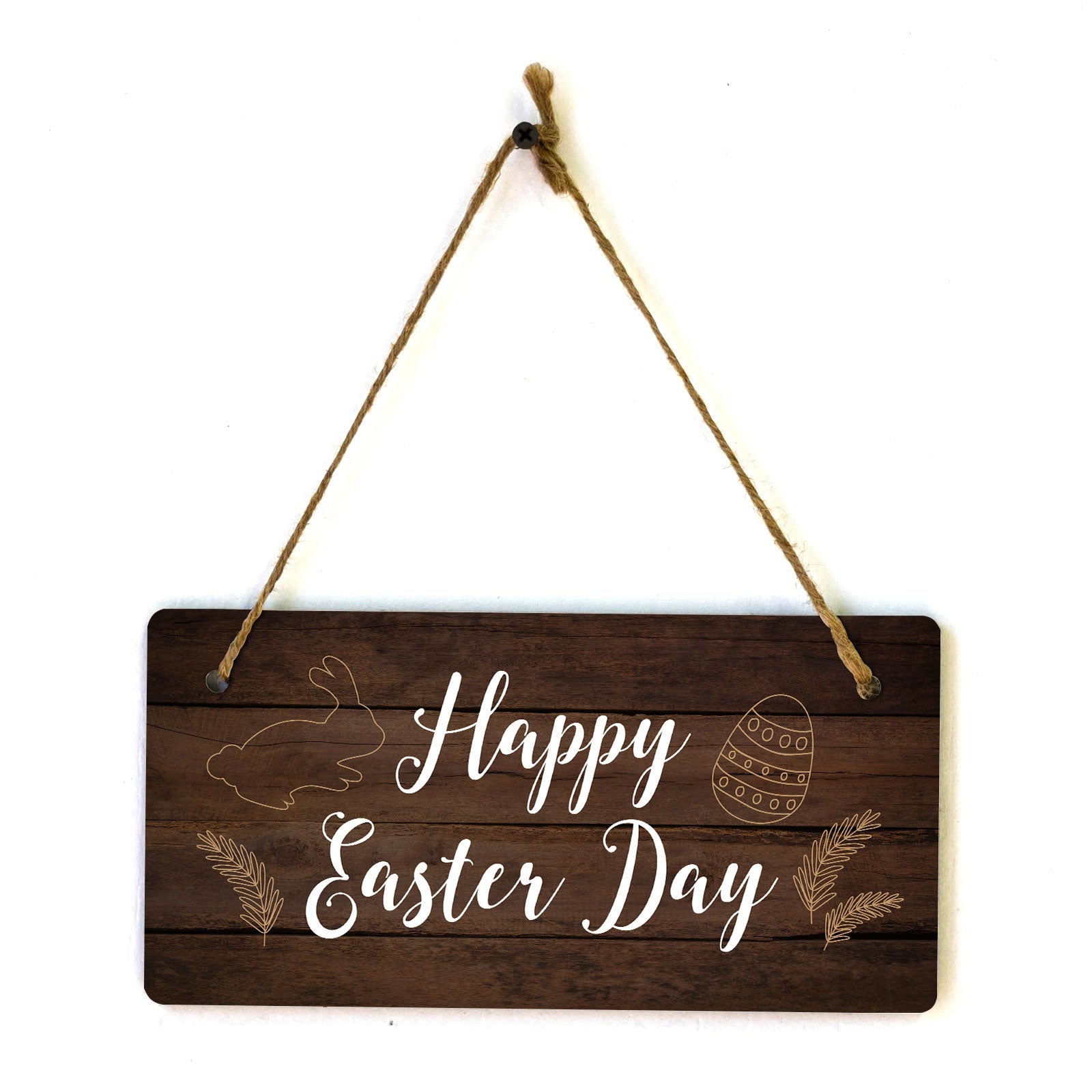 Introducing our versatile and stylish Happy Easter Day, the perfect blend of style and sophistication to elevate your home or workplace. Our 5x10 Hanging Sign range is the perfect choice for your home, workplace or business. Each sign is attached with rustic twine, providing a charming and versatile accent for any space. Our curated designs effortlessly complement a variety of styles, from rustic farmhouse or Modern Chic, to simple and functional options. Choose from our diverse range of designs to personalize your space. Whether it's a warm welcome at the entrance, a motivational quote for your workspace, or a playful touch for the kids' room, our Hanging Wall or Door Signs are the perfect way to express your unique style.
