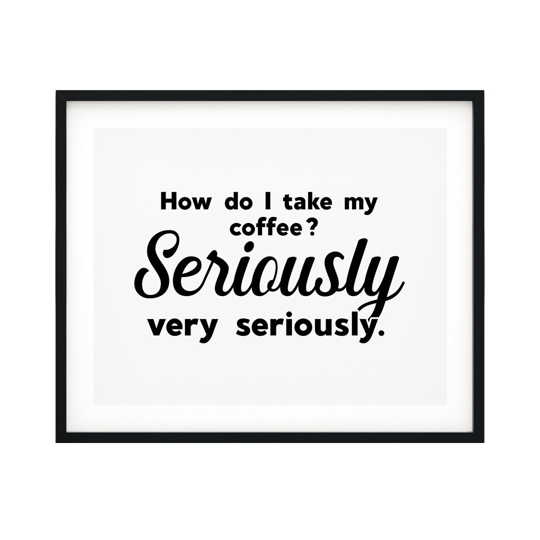 How Do I Take My Coffee. Seriously, Very Seriously UNFRAMED Print Coffee Bar Decor Wall Art