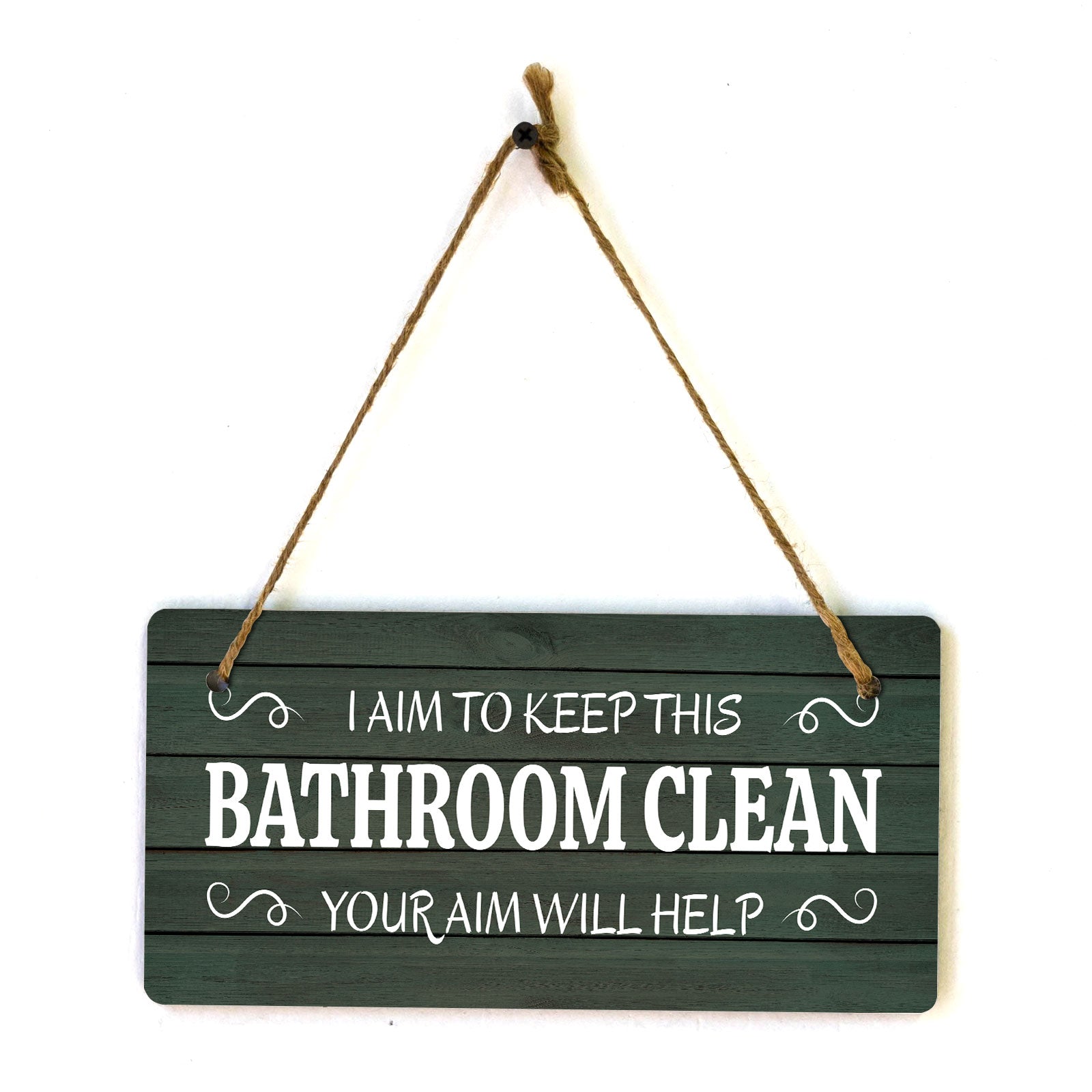 I Aim To Keep This Bathroom Clean Your Aim Will Help 5x10 Hanging Plus Wall or Door Sign | Funny Home Decor
