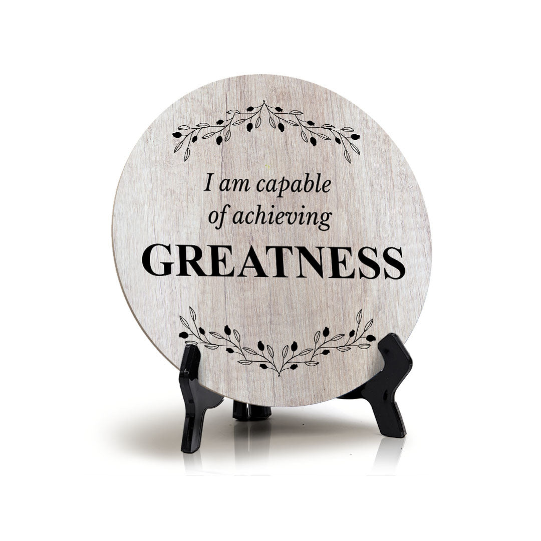 I Am Capable Of Achieving Greatness Wood Color Circle Table Sign (5" X 5")