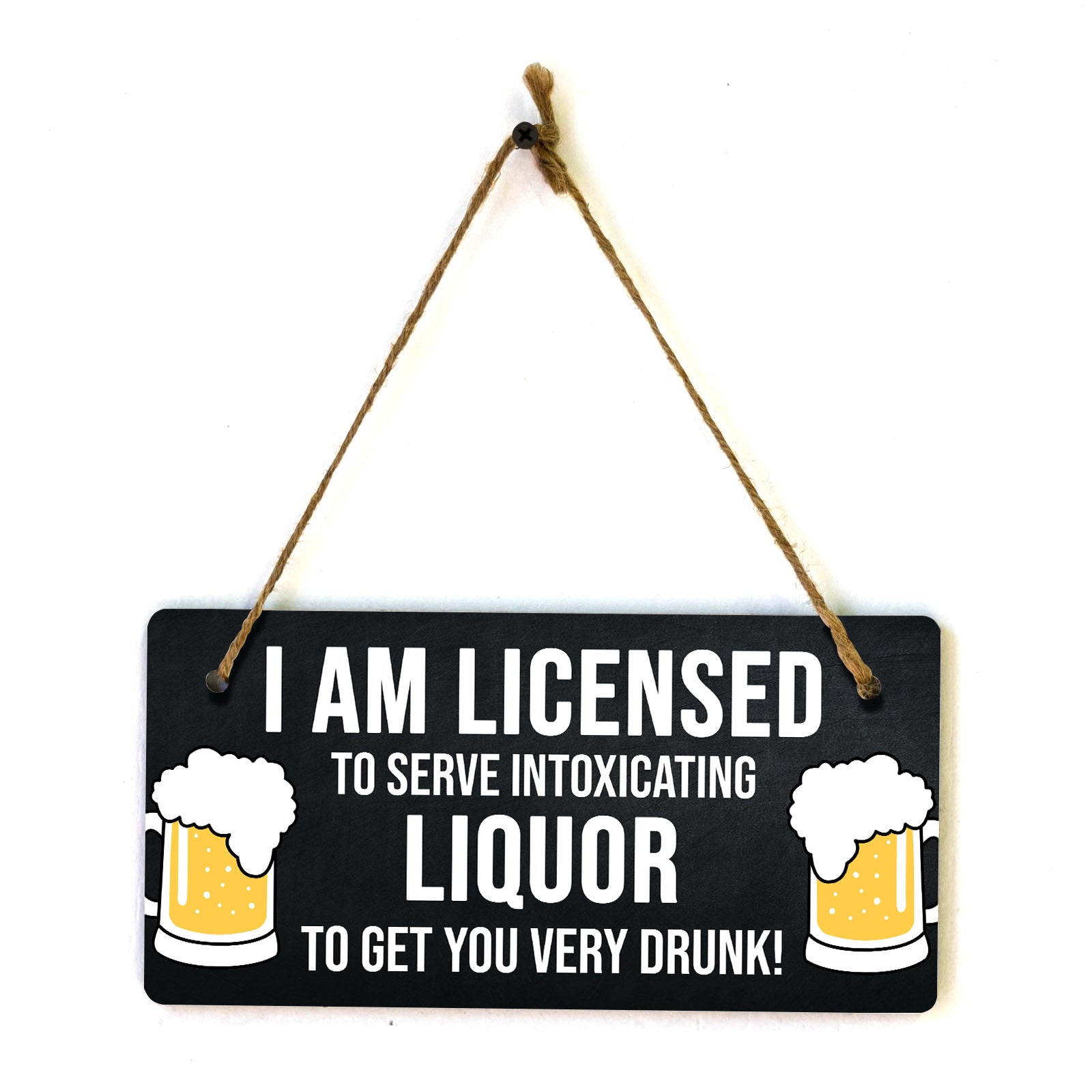 I Am Licensed To Serve Intoxicating Liquor To Get You Very Drunk! 5" x 10" Hanging Wall or Door Sign | Funny Home Decor