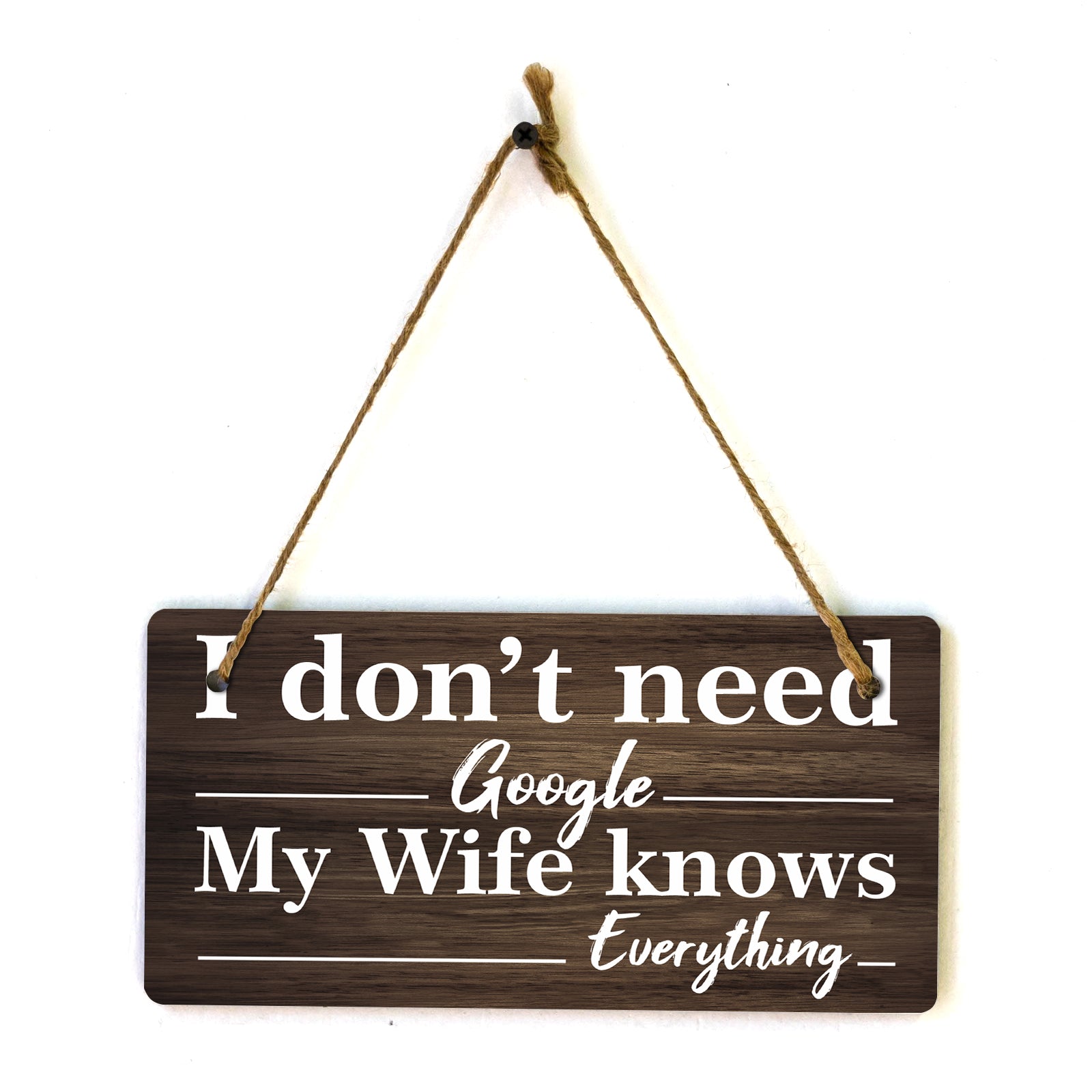 I Don't Need Google My Wife Knows Everything 5x10 Hanging Plus Wall or Door Sign | Funny Home Decor