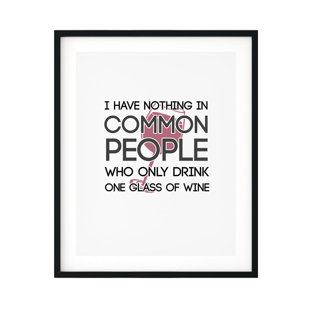 I Have Nothing In Common With People Who Only Drink One Glass Of Wine UNFRAMED Print Novelty Decor Wall Art