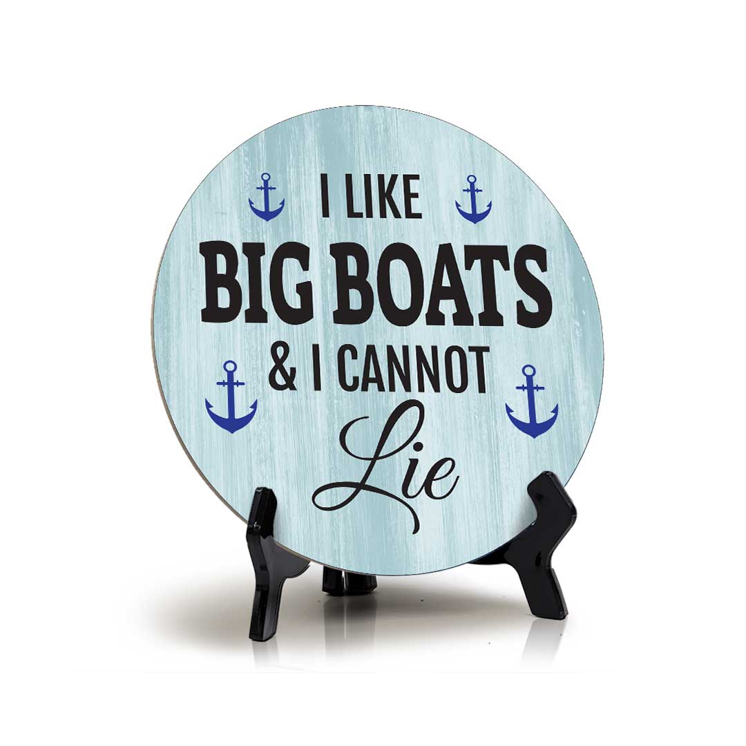 I Like Big Boats & I Cannot Lie (5 x 5“) Circle Table Sign with Acrylic Stand | Boats & Home Decor