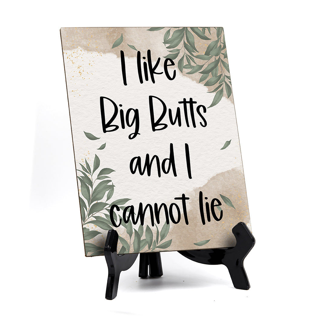I like Big Butts And I Cannot Iie Table Sign. Comes with Green Leaves Design (6" x...
