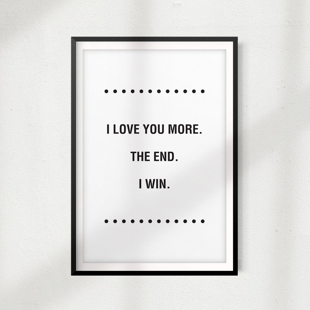 I Love You More. The End. I Win UNFRAMED Print Home Décor, Quote Wall Art