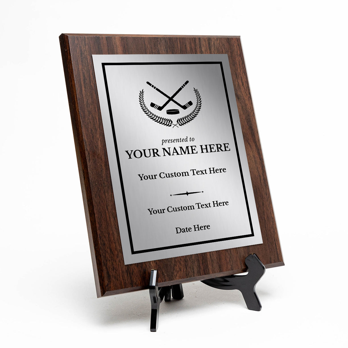 Ice Hockey Customizable Wooden Award Plaque | Easel Mount Option | Achievement and Recognition Personalizable Plaques