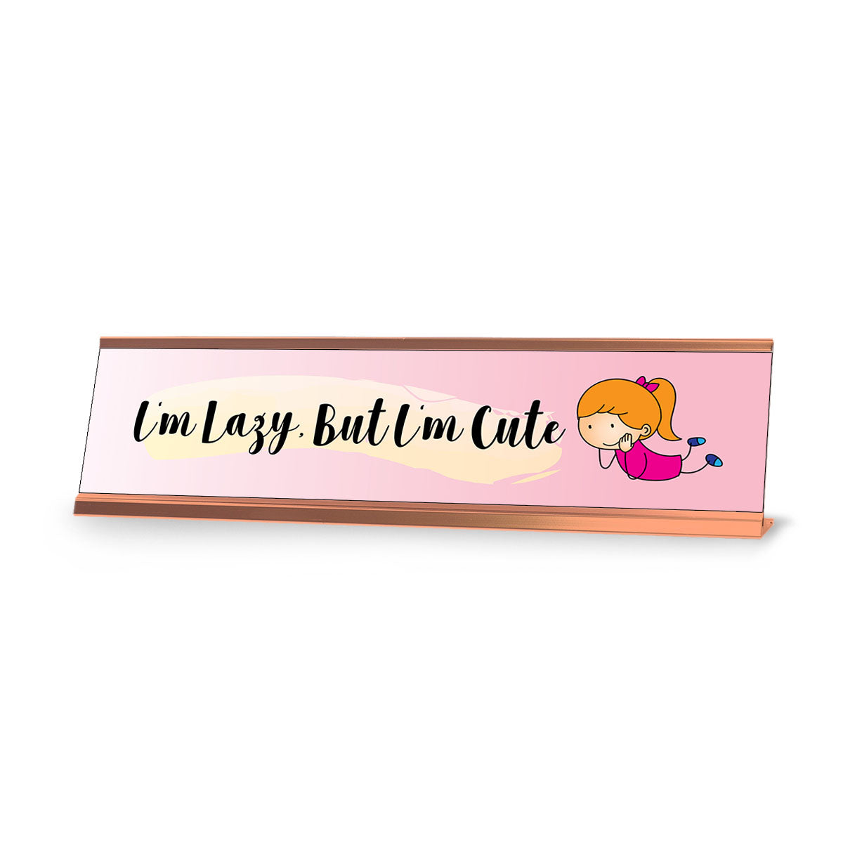 Designs ByLITA Stick People Series Desk Sign "I'm Lazy, But I'm Cute". Our novelty desk signs are great gift ideas for colleagues, work partners, managers, friends, family or for yourself. Easy to set-up in your office, on your desk, shelf or window ledge. Our nameplates are made out of premium lazer engraved plastic, fitting into a sturdy aluminum frame.