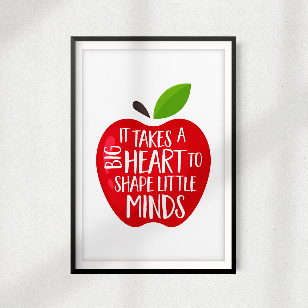 It Takes A Big Heart To Shape Little Minds UNFRAMED Print Home Décor, Quote Wall Art