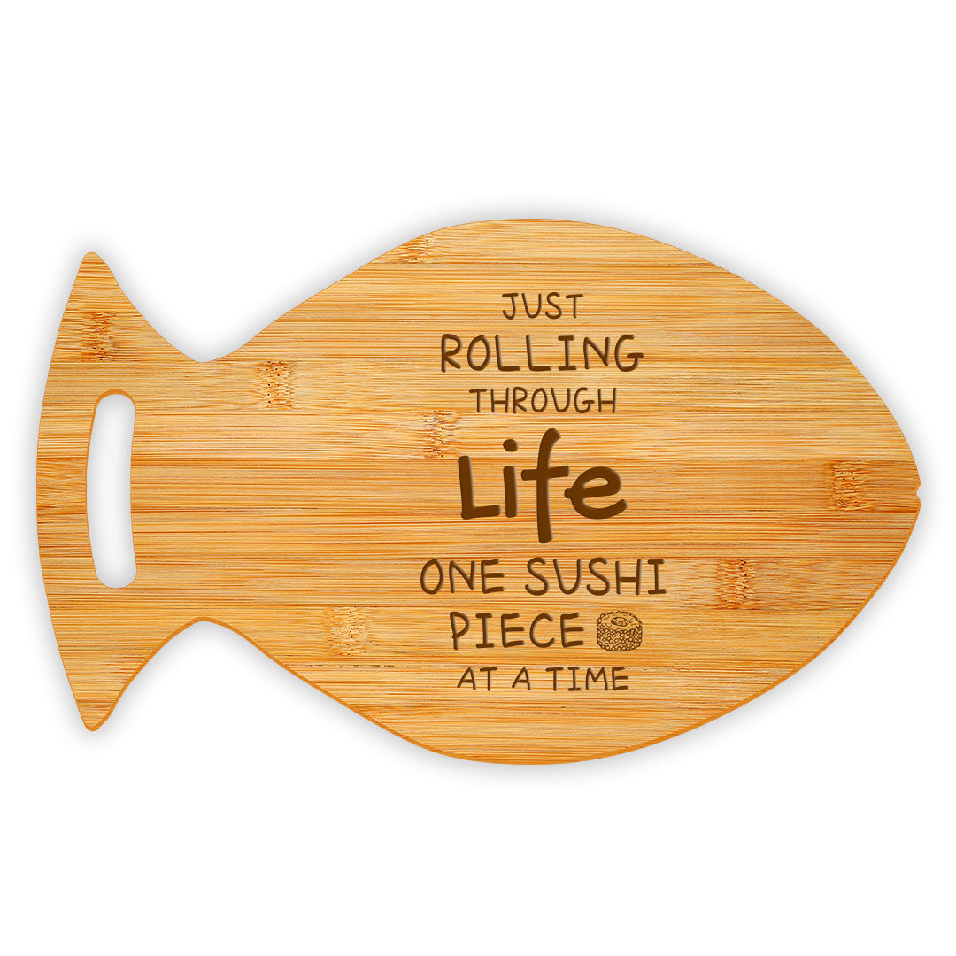 Just Rolling Through Life One Sushi Piece At A Time! 14 x 8.5" Fish Shape Cutting Board | Decorative Kitchen Accessory For Sushi Lovers