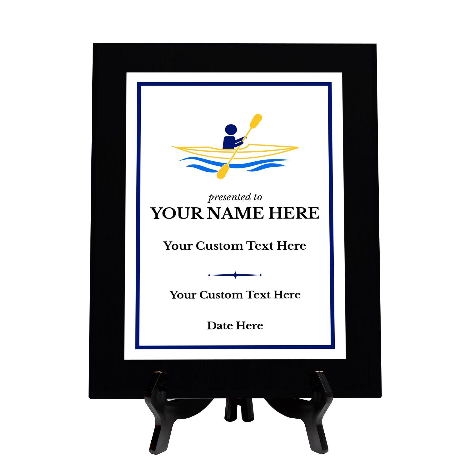 Kayaking Customizable Black Frame Wooden Award Plaque | Easel Mount Option | Achievement and Recognition Personalizable Plaques | Sports Award