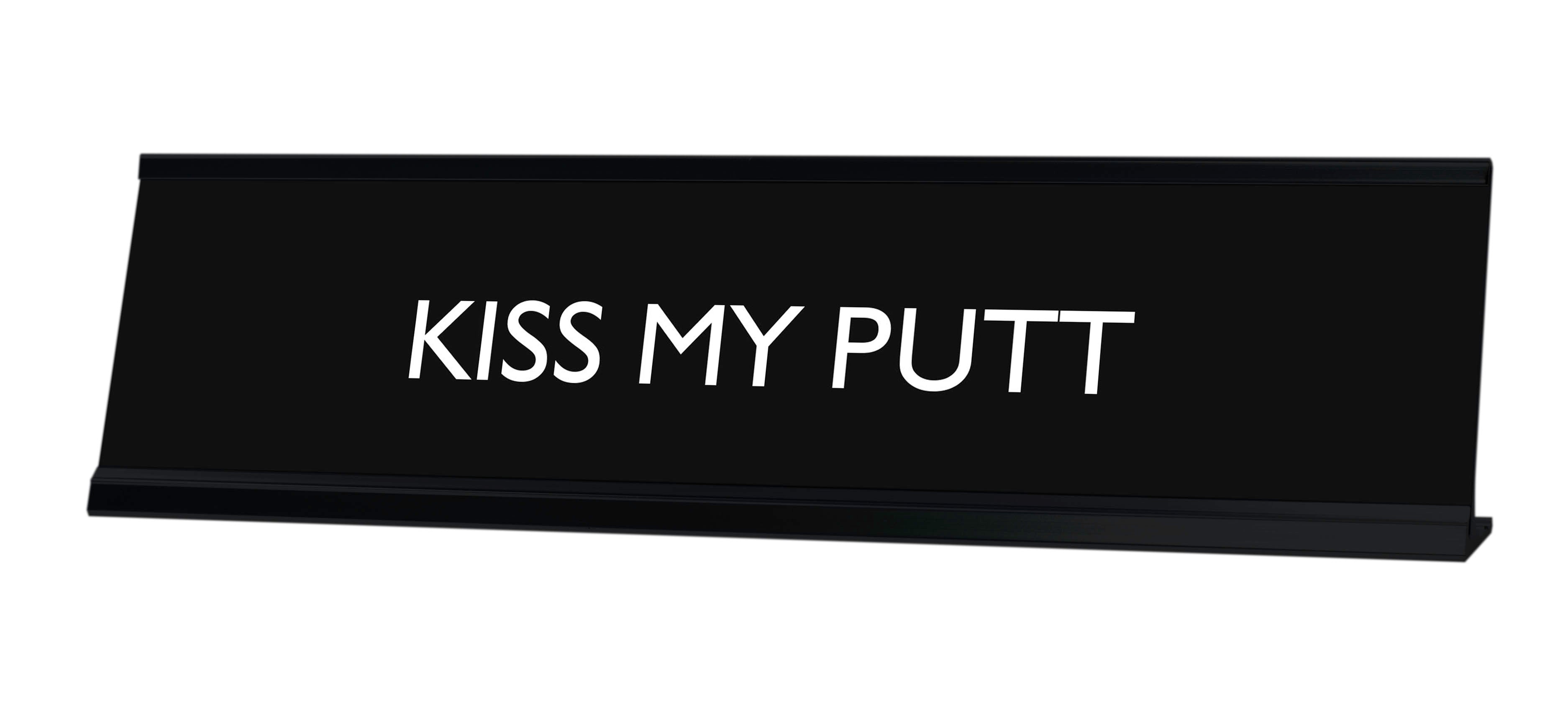 Novelty Desk Plate sign for the at home or work. The name plate is black with white lettering. Plate slides into a silver aluminum desk holder.