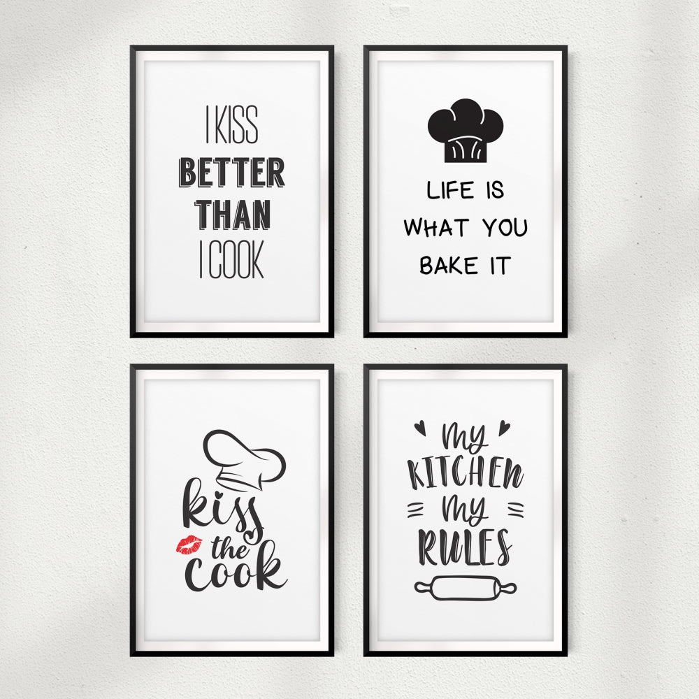 Kitchen Cook (Set of 4) UNFRAMED Print Home Décor, Wall Art