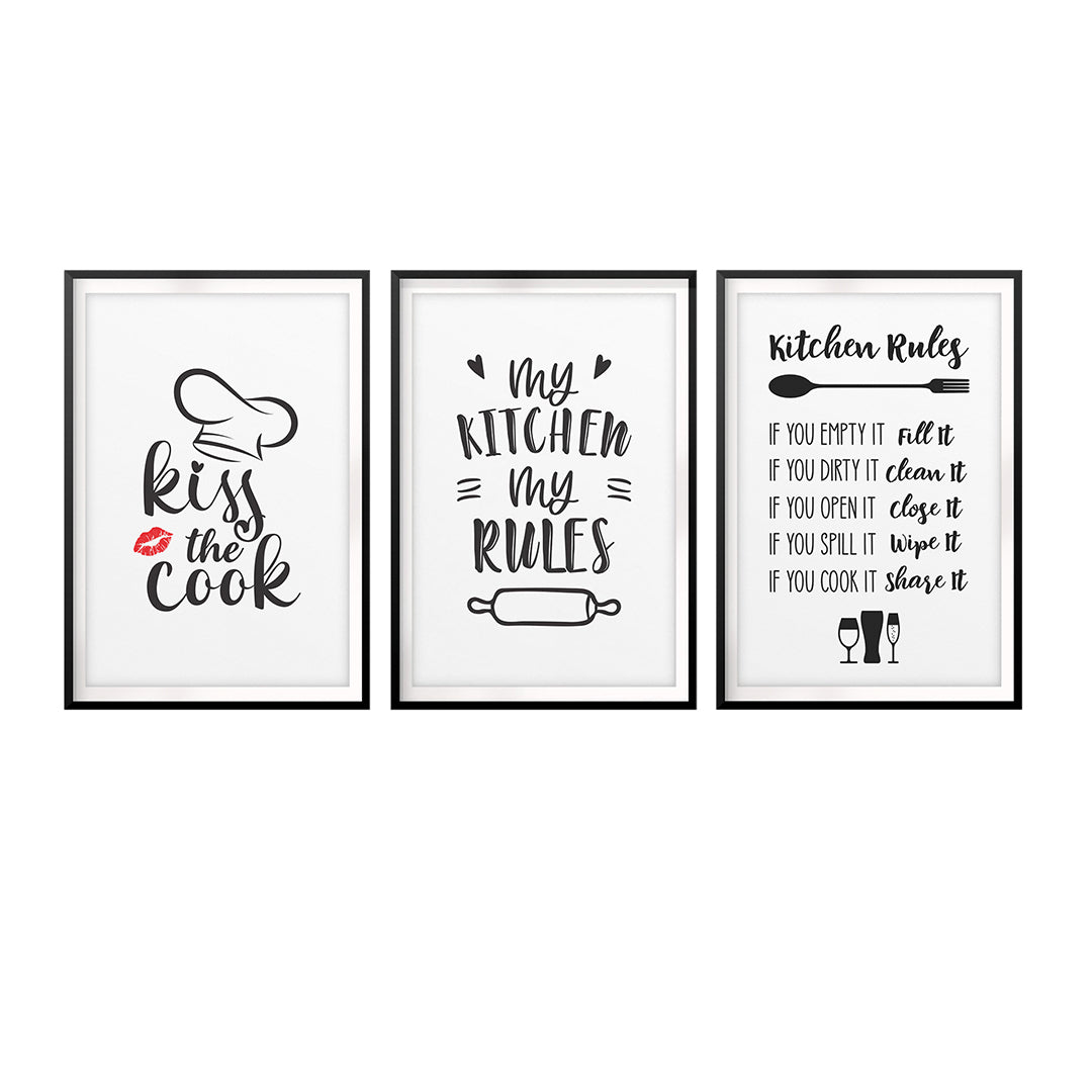 Kitchen Rules Wall Art UNFRAMED Print (3 Pack)