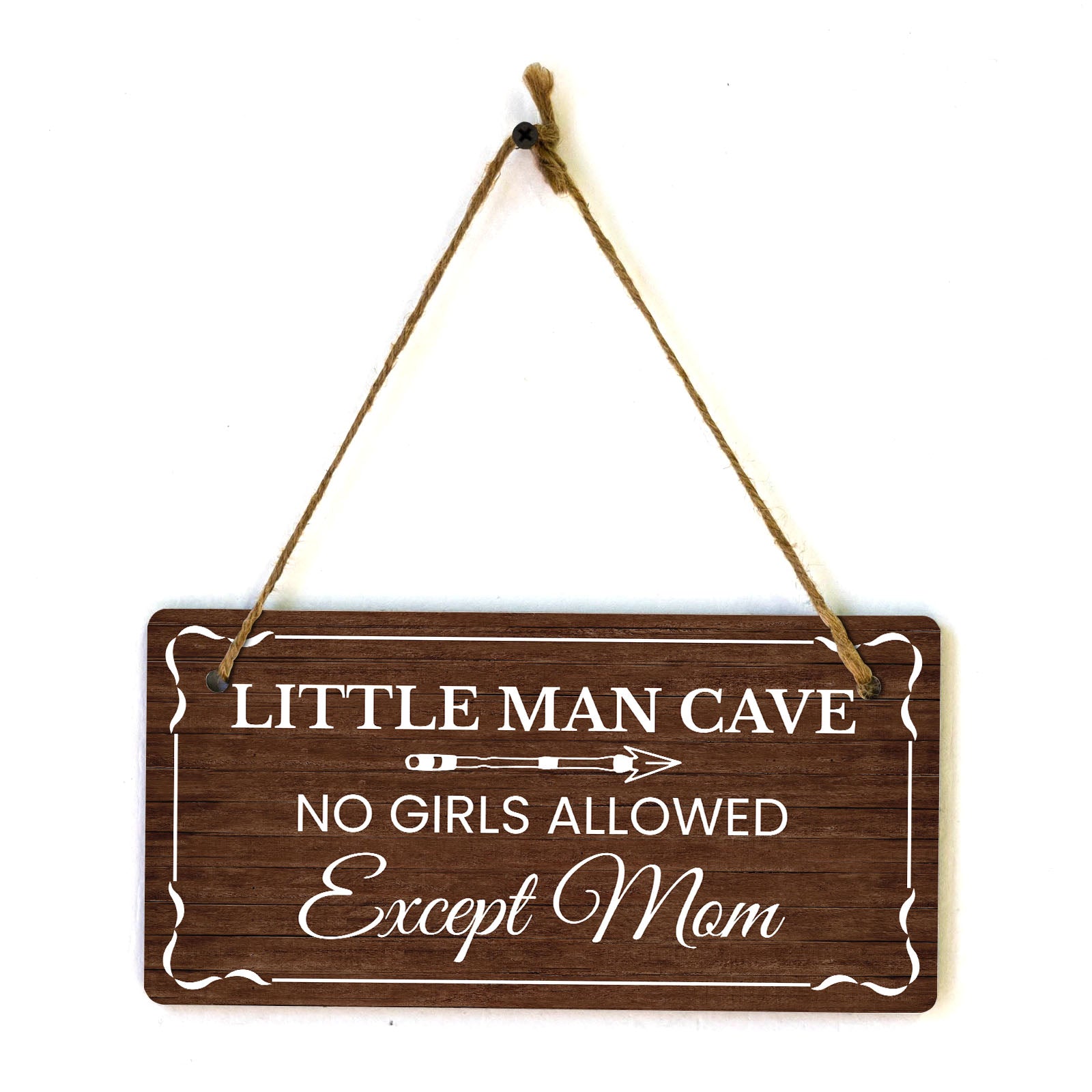 Little Man Cave No Girls Allowed Except Mom 5x10 Hanging Wall or Door Sign | Warm Welcoming Signage For Homes