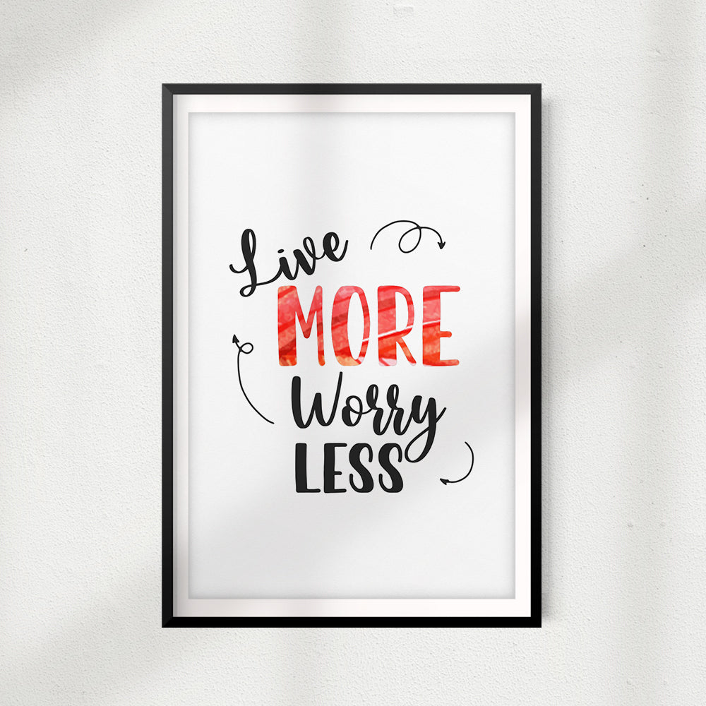 Live More Worry Less UNFRAMED Print Home Décor, Quote Wall Art