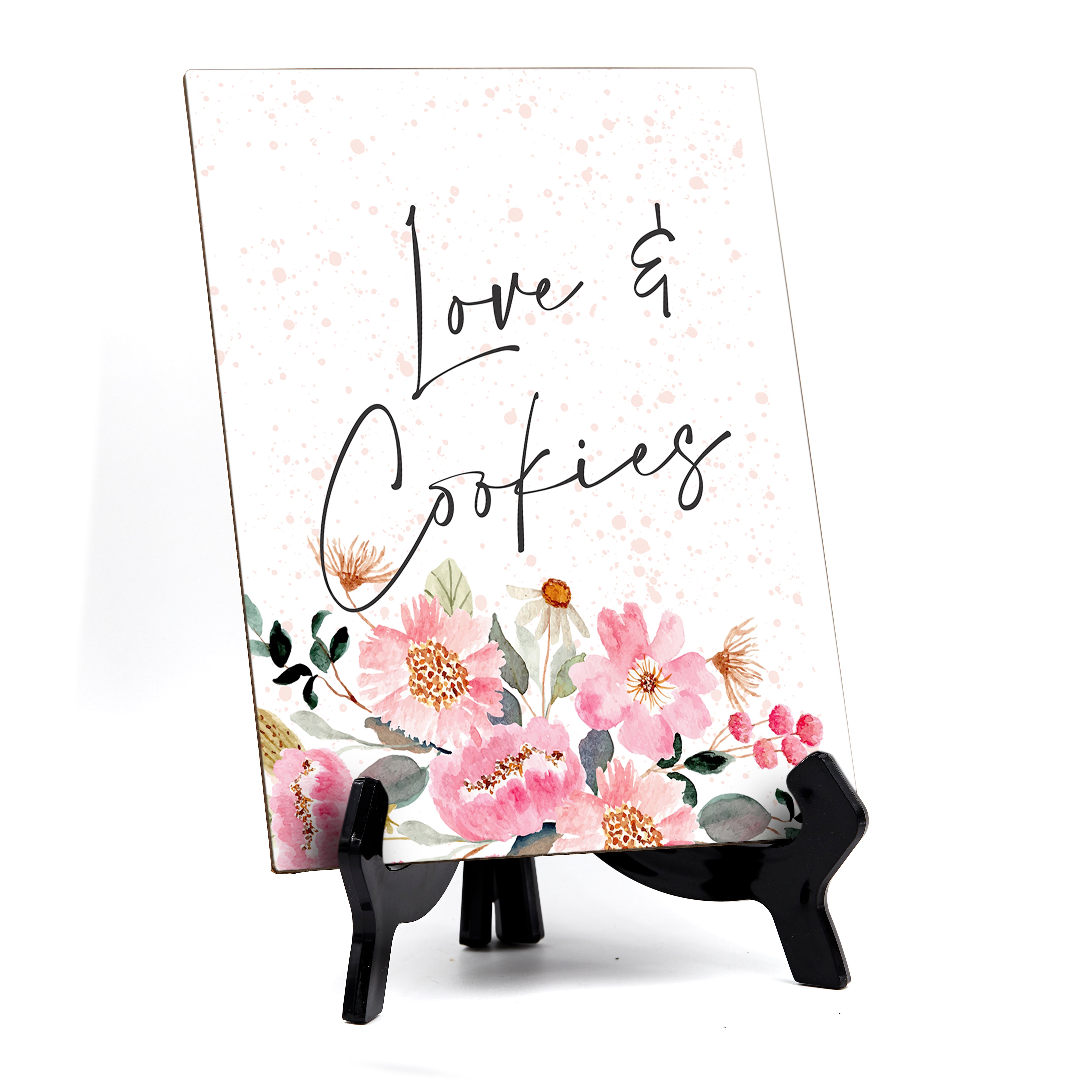 Love and Cookies Sign with Easel, Floral Watercolor Design (6" x 8")