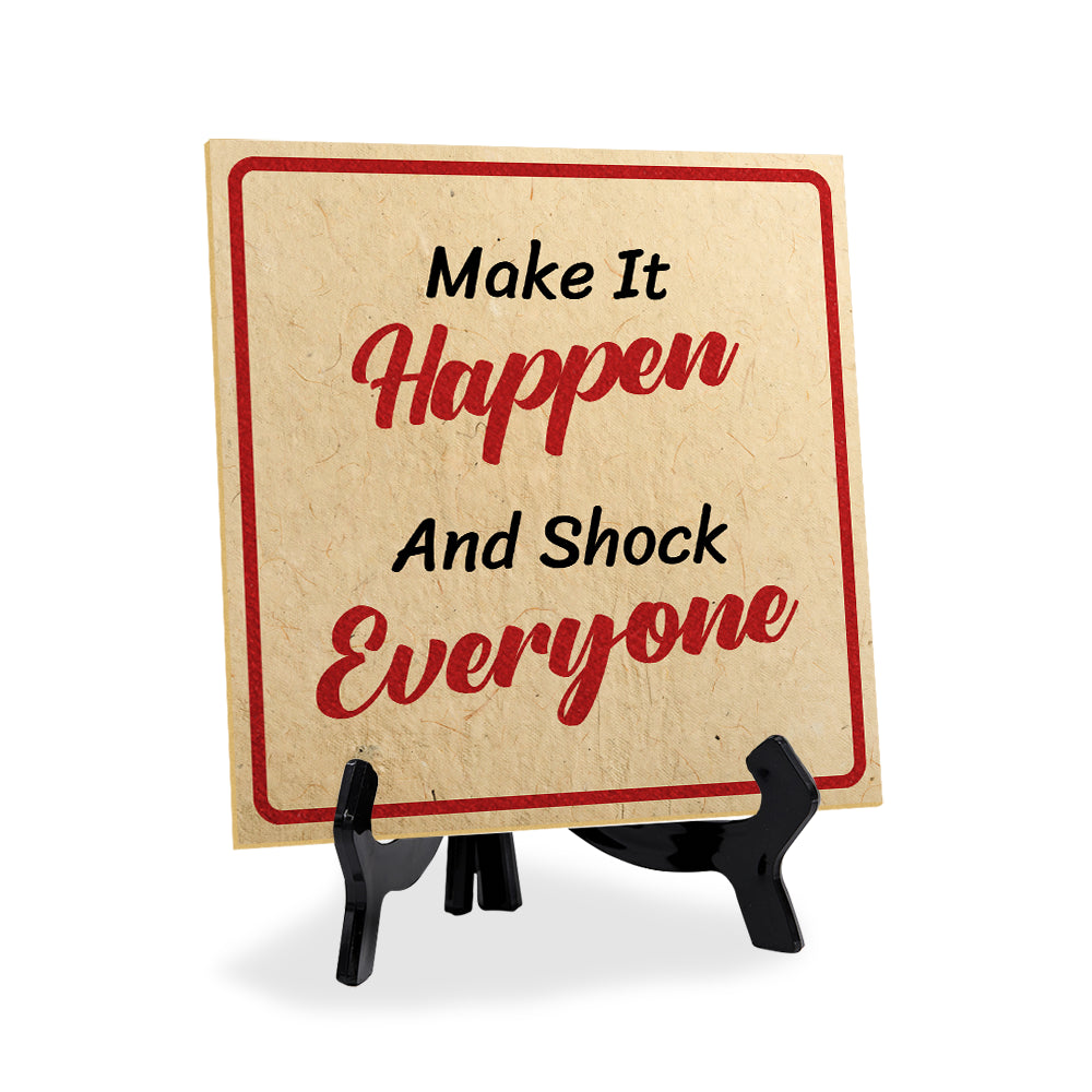 Make It Happen And Shock Everyone 5"x 5" Square Table Sign With Acrylic Easel | Motivational Home Decor