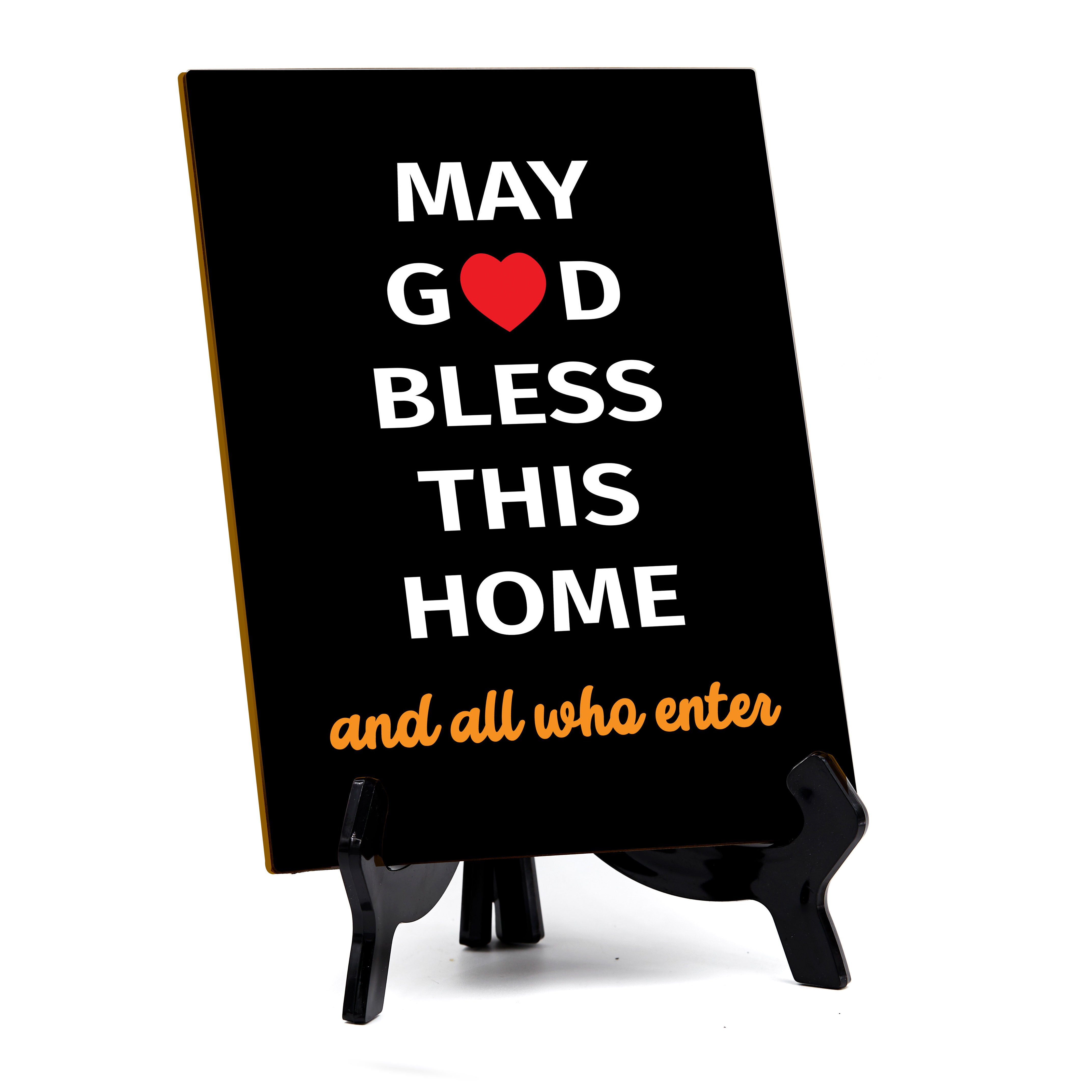 May God Bless This Home And All Who Enter, 6X8 Table Sign. This table sign comes with it's own black acrylic easel, easy to set up and display on any flat surface.