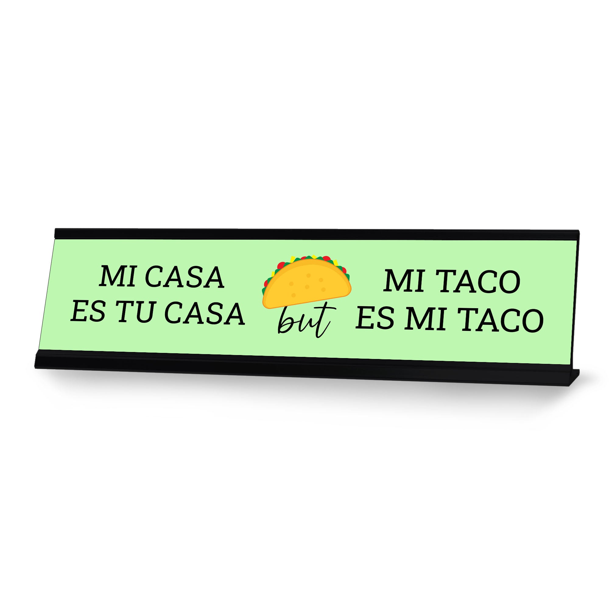 Novelty Desk Sign Nameplate "Mi Casa Es Tu Casa But Mi Taco Es Mi Taco, Green". Fun...