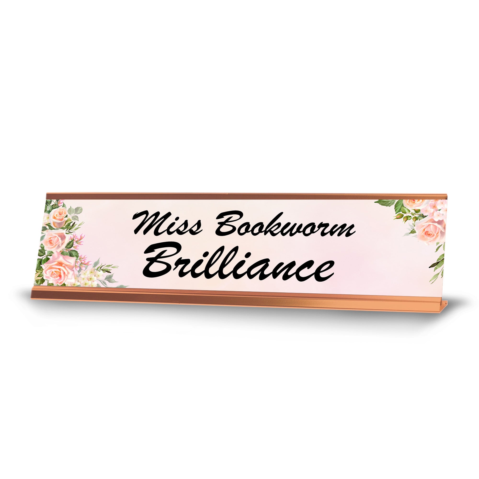 Miss Bookworm Brilliance Rose Gold Frame Desk Sign (2x8") | Appreciation Idea For Her | Girlfriend| Workspace Decoration