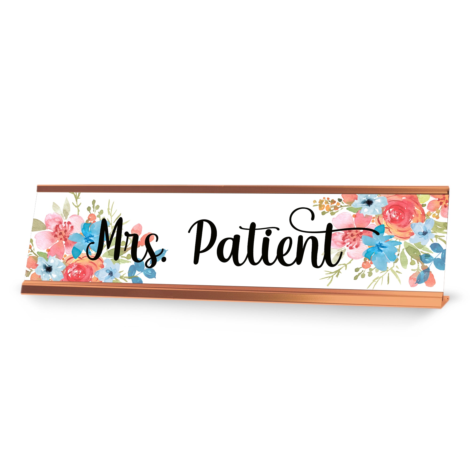 Mrs. Patient, Flowers Gold Frame, Desk Sign (2x8")