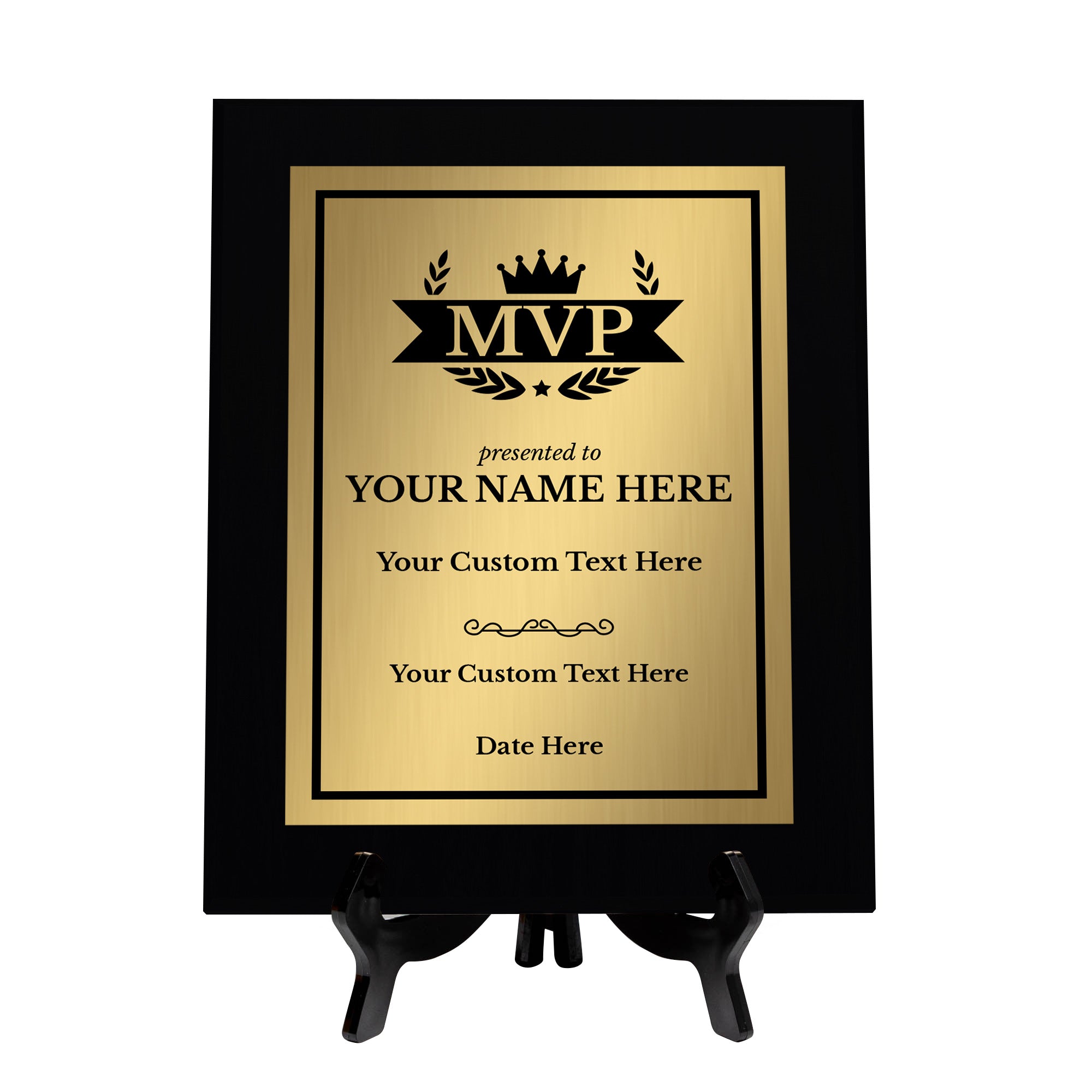 MVP (Most Valuable Player) Customizable Black Frame Award Plaque | Easel Mount Option | Achievement and Recognition Personalizable Plaques