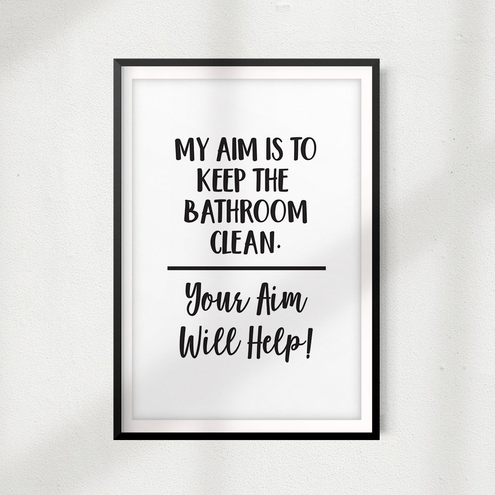 My Aim Is To Keep The Bathroom Clean UNFRAMED Print Home Décor, Bathroom Wall Art