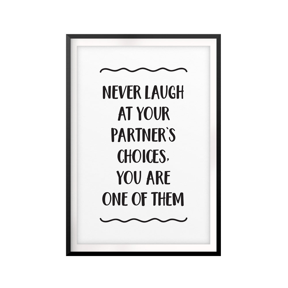 Never Laugh At Your Partner's Choices UNFRAMED Print Funny Quote Wall Art