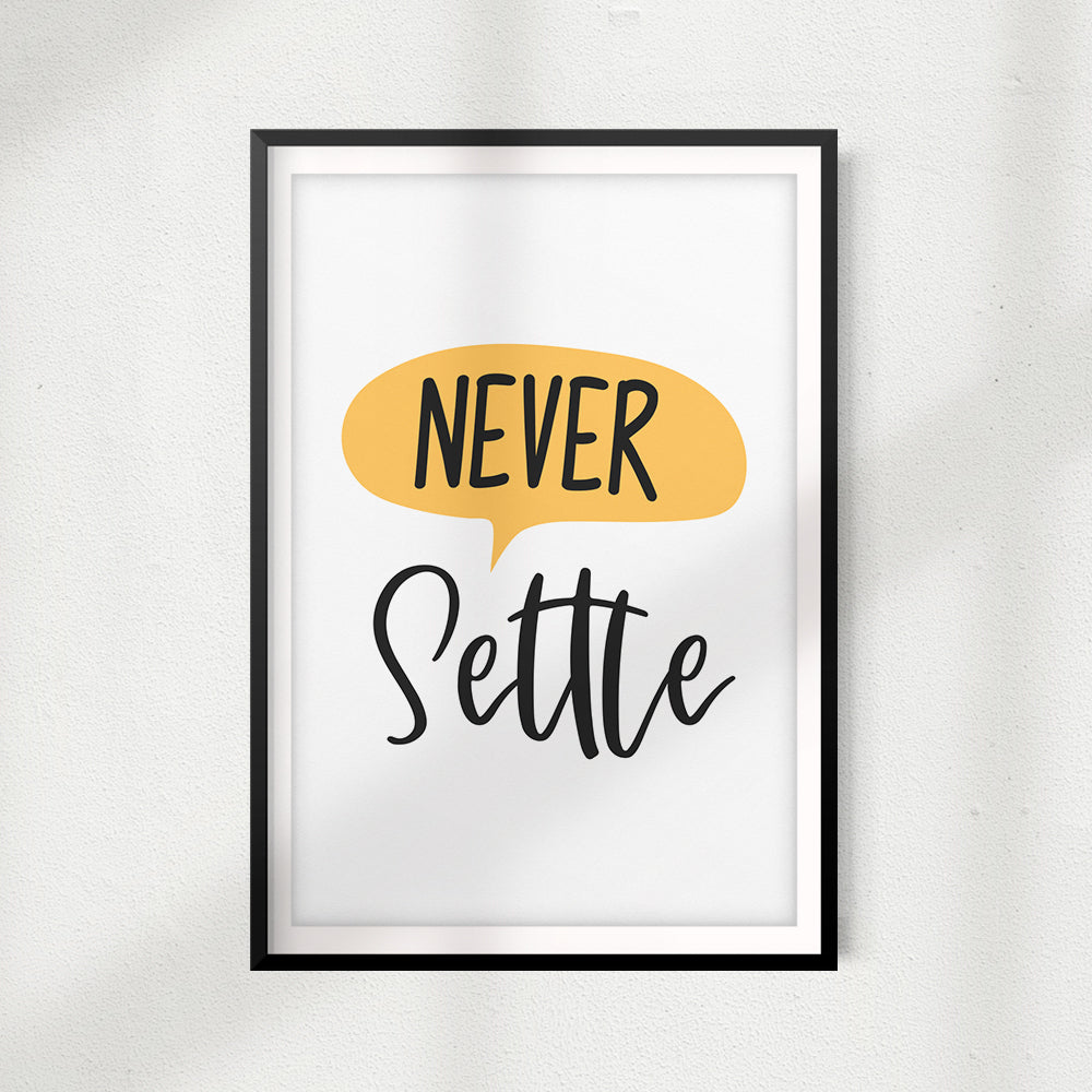 Never Settle UNFRAMED Print Home Décor, Quote Wall Art