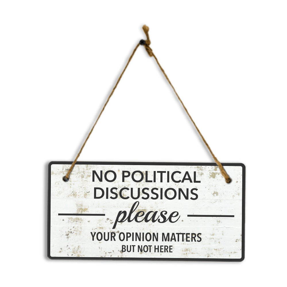 No Political Discussions Please Your Opinion Matters But Not Here 5x10 Hanging Wall or Door Sign | Decorative Household Signs for American Families