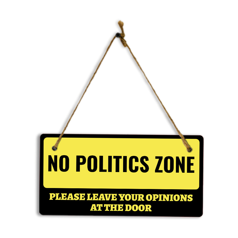 No Politics Zone Please Leave Your Opinions At The Door 5x10 Hanging Wall or Door Sign | Decorative Household Signs for American Families
