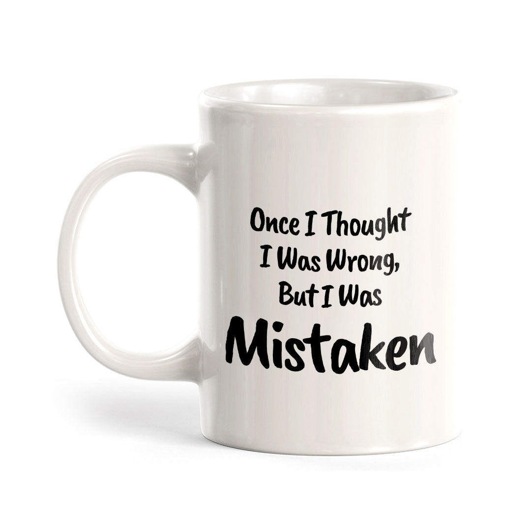 Once I Thought I Was Wrong, But I Was Mistaken Coffee Mug. This mug is great for your home, office or workspace. Perfect gift for your friends and family, be sure to check out our other Cute Funny Cups mug designs!