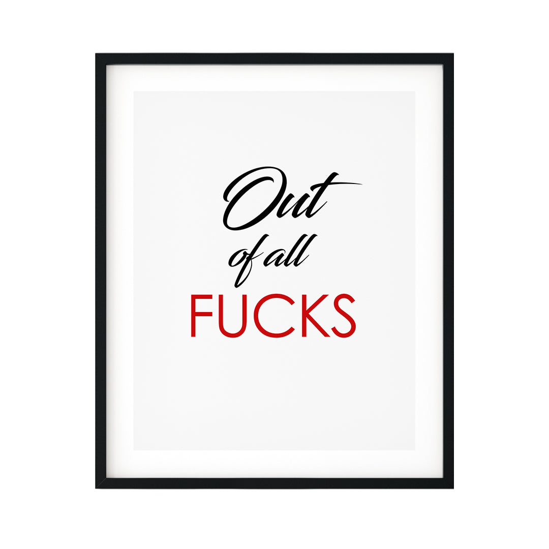 Out Of All Fucks UNFRAMED Print Novelty Decor Wall Art