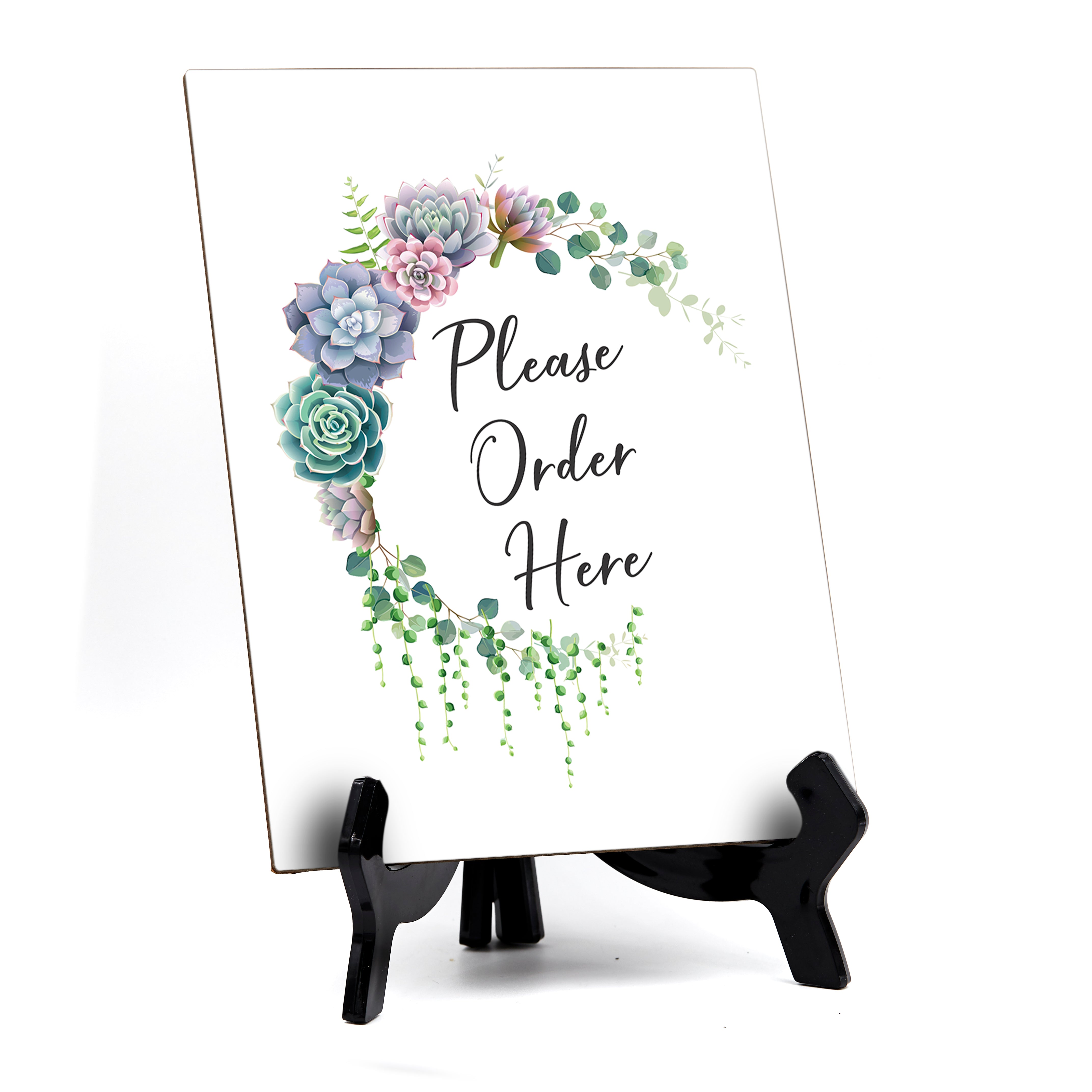 Please Order Here Table Sign. Comes with Easel, Floral Crescent Design (6" x 8") Professional Sign. Great...