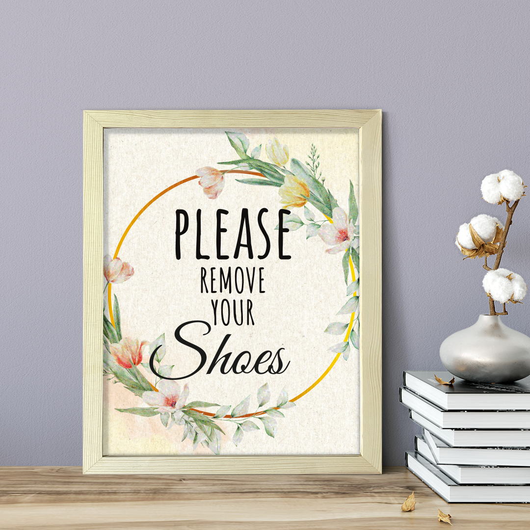 Please Remove Your Shoes, Floral UNFRAMED PRINT. Our wall art is available either as a 5" x 7", 8" x 10" or 11" x 14". Printed on 160 GSM high quality card. Comes as an UNFRAMED print. Easy to hang on any wall. This art is great for your home, office, workspace, for Air BnB properties/ hosts, and hospitality venues. Be sure to check out our other floral designs!