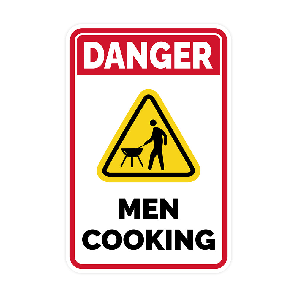 Portrait Round Plus Danger Men Cooking (BBQ) Wall or Door Sign | Easy Installation | Funny Novelty Imitation Warning Signs