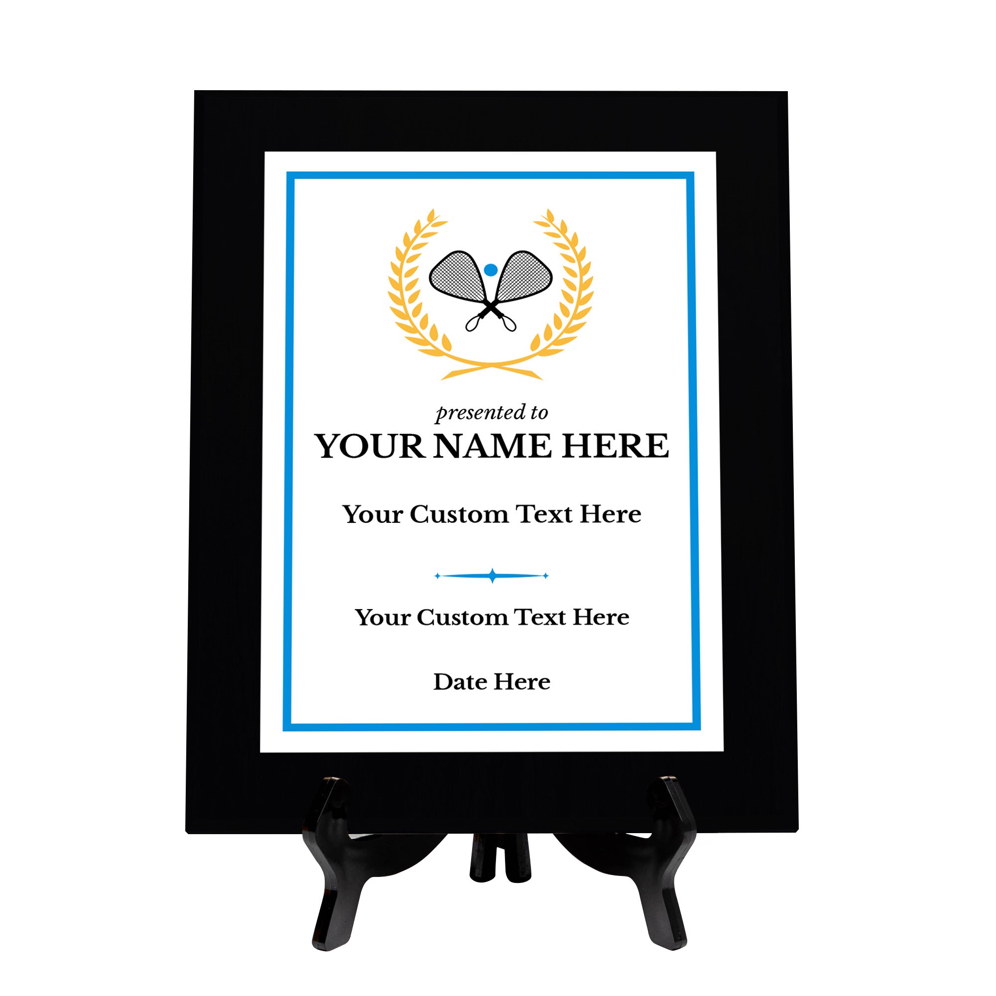 Racquetball Customizable Black Frame Wooden Award Plaque | Easel Mount Option | Achievement and Recognition Personalizable Plaques | Sports Award