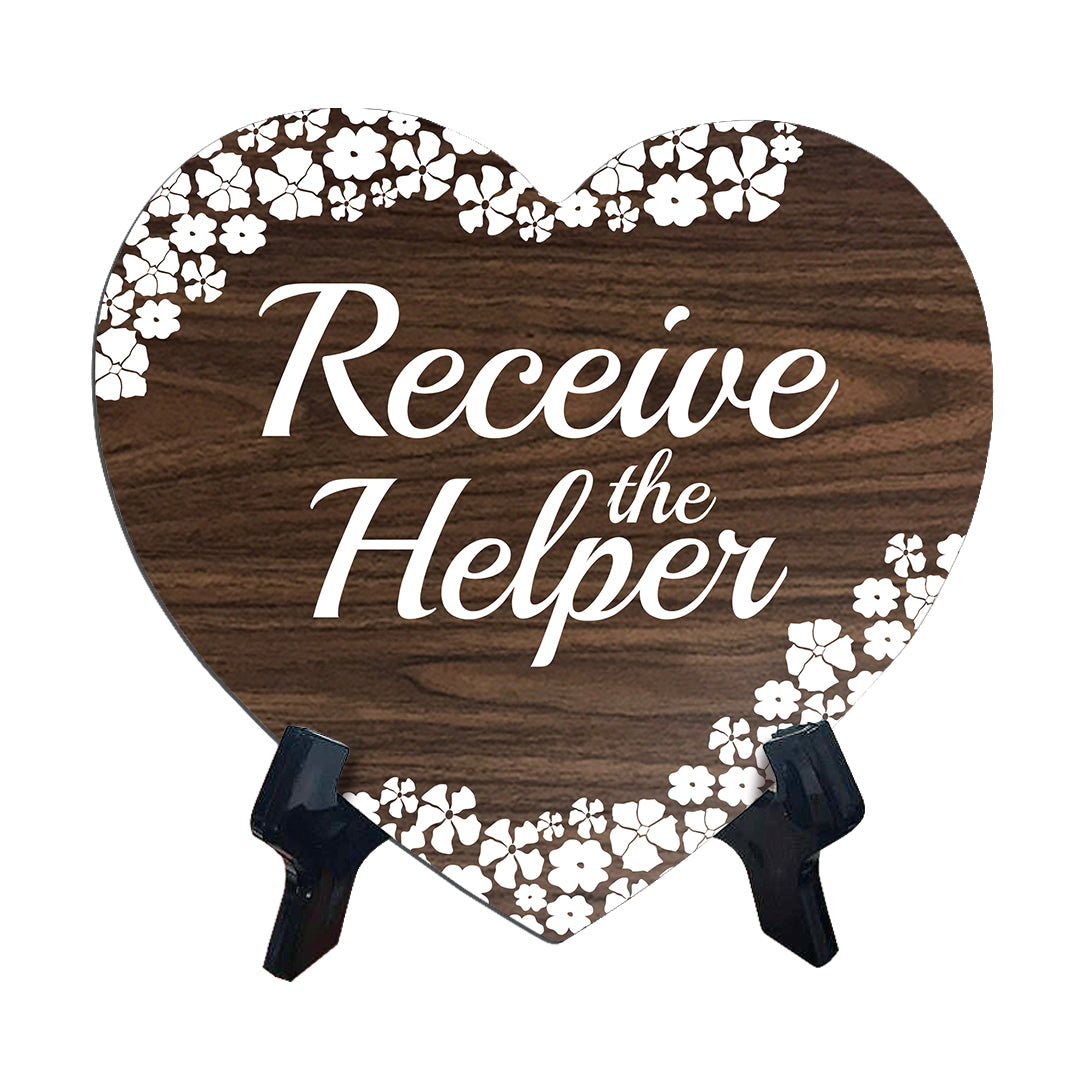 Receive The Helper Heart Shape Table Sign (6 x 5.4") | God's Grace Home Decoration
