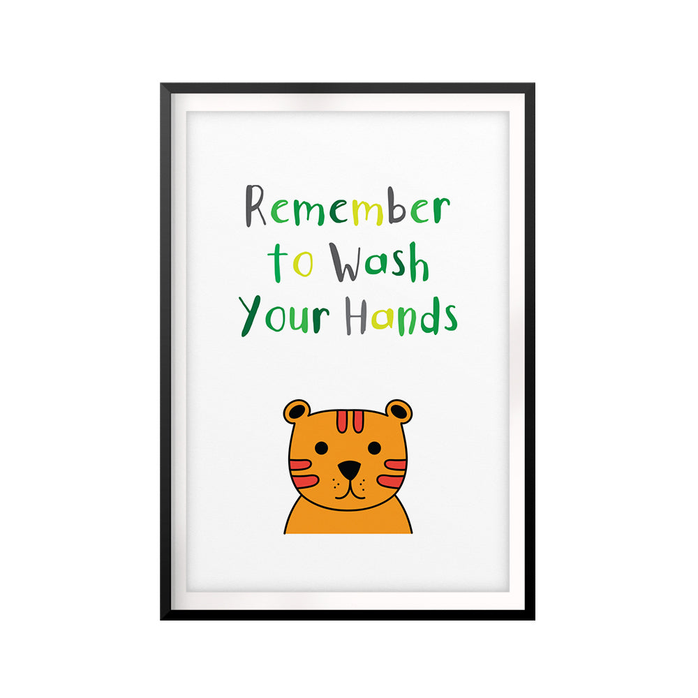 Remember To Wash Your Hands Tiger Cartoon UNFRAMED Print Kids Bathroom Wall Art