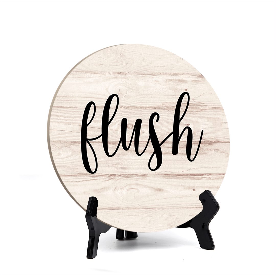 Round Flush, Decorative Bathroom Table Sign with Acrylic Easel (5 x 5")