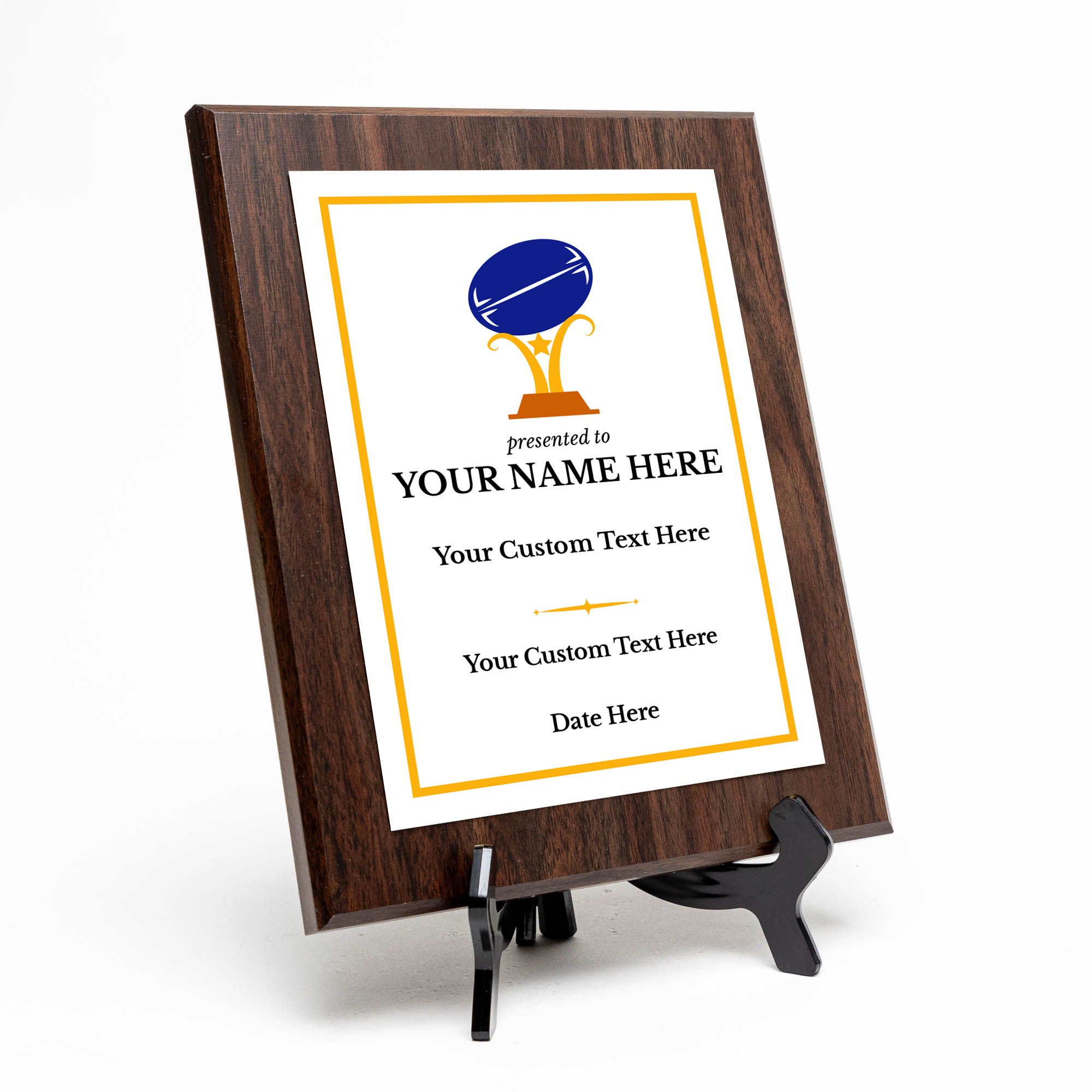 Rugby Customizable Wooden Award Plaque | Easel Mount Option | Achievement and Recognition Personalizable Plaques